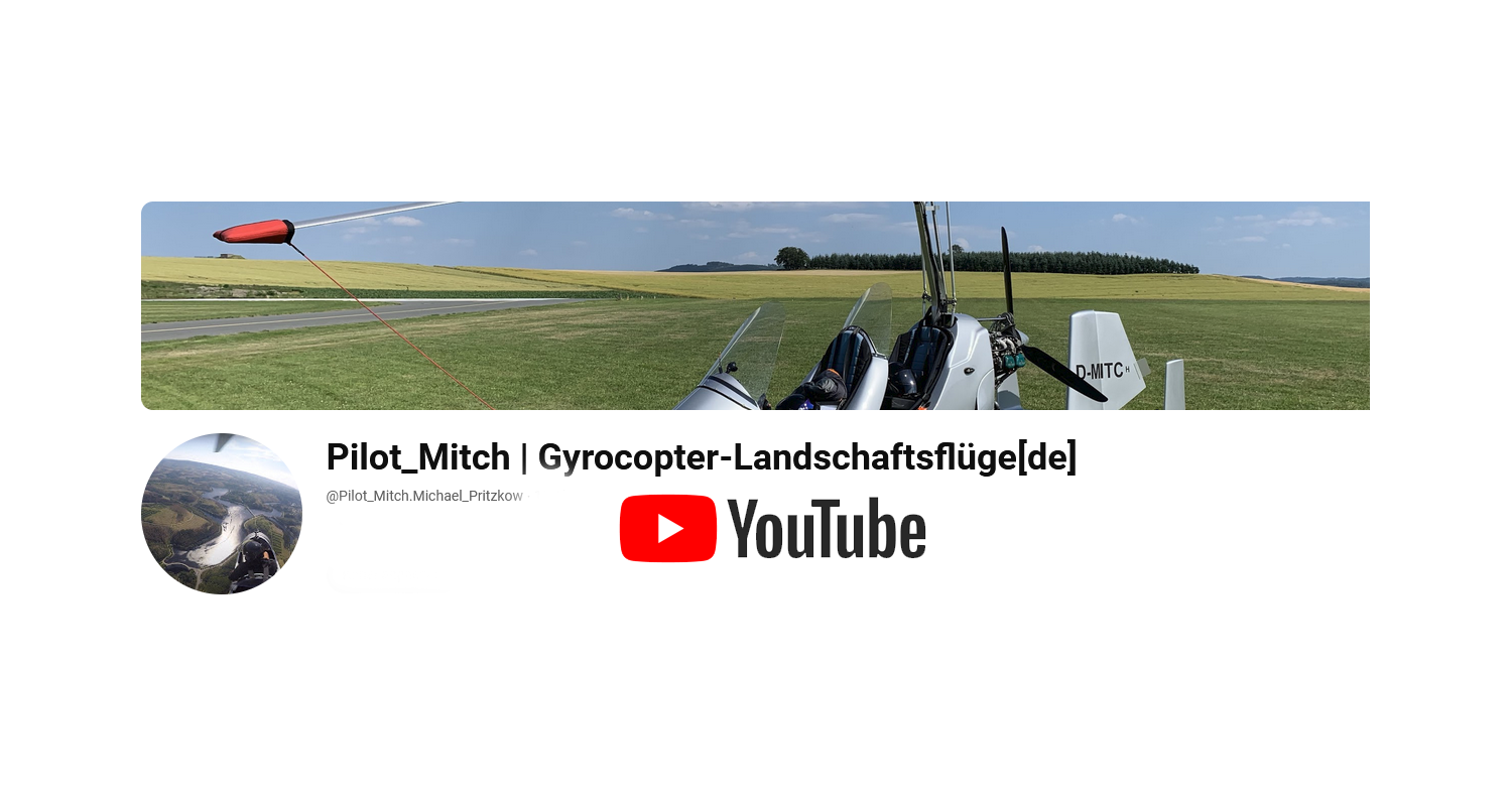 Auf meinem YouTube-Kanal "Pilot_Mitch - Gyrocopter Landschaftsflüge" können Sie sich gerne einen kleinen Eindruck von einigen meiner Flüge verschaffen.